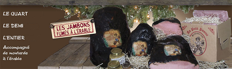 Depuis 1945, la méthode traditionnelle utilisée par notre maître charcutier, fait de notre jambon un produit unique et réputé. Pour garantir sa qualité exceptionnelle, nous sélectionnons rigoureusement les fesses de porc, les saumurons à l'ancienne, les rôtissons au sucre du pays et les fumons à partir d'un feu de bois d'érable en combustion lente, une technique très ancienne et naturelle qui donne une saveur délicate et recherchée à notre jambon artisanal.